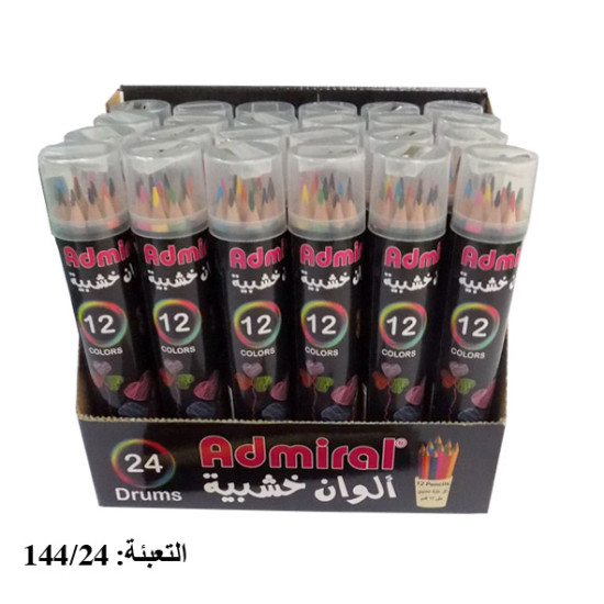 ألوان خشب 12 لون طويل اسطوانة مع براية ADMIRAL
